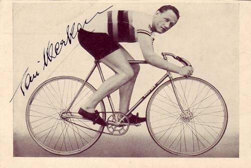 Prior to winning the sprint gold medal at Berlin, Toni Merkens won the amateur World Championships in the sprint in 1935. He had been German champion in 1934-35, and also won sprint titles in 1934-35 in London and at the Grand Prix de Paris. In the final of the 1936 Berlin Olympics he met his eternal rival, Dutchman Arie van Vliet. Merkens won both races, the Dutch claimed an interference foul in the first race as Merkens had hindered van Vliet. The jury decided that the race should be counted, but Merkens must pay a fine of 100 gold francs for leaving the racing line. This was a unique cycling event in Olympic history.