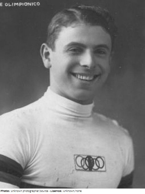 Attilio Pavesi was the 11th child in an Italian family from the Emilia-Romagna region. In 1931 he had won the Coppa Caldirola, and early in 1932 he was second at the Giro di Sicilia. Only an alternate for the 1932 Italian team in the Olympic road race, he showed his form in Los Angeles in two selection races and was moved onto the team. Pavesi won the time trial road race and led Italy to gold in the team road race. After the Olympics, he had a short professional career. In 1933 he placed 62nd at Milano-Sanremo, and he was 52nd in the 1934 Giro d’Italia. At the beginning of World War II, Pavesi moved to San Miguel, Argentina where he opened a bike shop and organized cycle races. At his death in 2011, he was the oldest living Olympic gold medalist.