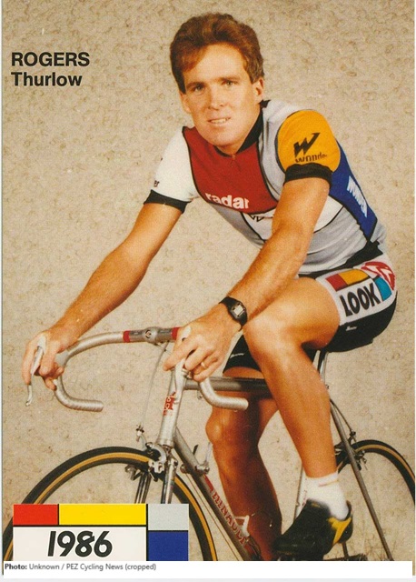Thurlow Rogers was the top American road racer in 1983, placing second in the Settimana Ciclistica Bergamasca, third in the Regioni, another Italian stage race, and fourth in the Peace Race. He was named USA Cycling’s Rider of the Year for 1983. After his sixth-place finish in the 1984 Olympic road race, Rogers turned professional, riding first with La Vie Claire as a lieutenant for Bernard Hinault and Greg LeMond. He later raced with Subaru-Montgomery and the Mercury Cycling Team in a pro career that lasted from 1986-2008. Rogers was a solid stage racer who won multiple stages during his career, including several in the Coors Classic and Redlands Bicycle Classic. In 1985 he won the GC at the inaugural Redlands Bicycle Classic and then won GC at the Mammoth Classic in 1986. Rogers was also GC winner at the 1986 Vancouver Coors Pacific, the 1996 Joe Martin Stage Race, and the 1999 Willamette Classic. He won the mountains classification at the 1998 Redlands Bicycle Classic.