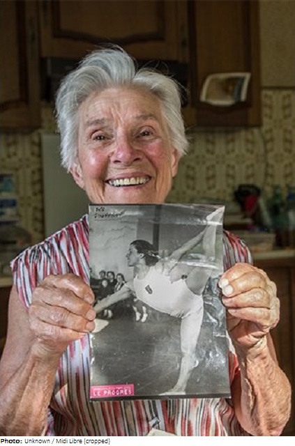 Madeline Jouffroy took up gymnastics at the age of 14 and began to truly develop her talents after World War II. She began representing France internationally in 1946, with her greatest moment coming in 1950, when she won a silver medal in the team event at the 1950 World Championships. Two years later, she was selected to represent her country at the 1952 Helsinki Olympics, where she was 11th and 12th in the team portable apparatus and all-around respectively. Individually, her best finish was joint-41st (with Luciana Reali of Italy) in the uneven bars. Her last major international competition was the 1954 World Championships.