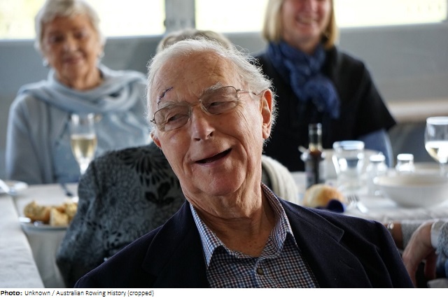 From Western Australia, Adrian Monger competed in athletics and boxing in his youth and took up rowing after moving to Victoria to study at Geelong Grammar School and later at the University of Melbourne. He was on the University of Melbourne eights crew that won the Oxford and Cambridge Cup (trophy awarded to the winner of the Australian University Championship in coxed eights) in 1953 and the Victorian eights crew that won the Kings Cup (Australian national championships in coxed eights) in 1954 and 1956, placing second in 1955. The highlight of his competitive career was at the 1956 Olympics, where the Australian eights crew won a bronze medal.