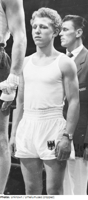 Welterweight boxer Günther Heidemann from Berlin won a bronze medal at the 1952 Helsinki Olympic Games, after losing his semi-final against Poland’s Zygmunt Chychła on a narrow 2-1 decision. Heidemann qualified for the Olympics by winning the German national team in Olympic year. He lost to Chychła again in the quarter-finals at the 1953 European Championships. He won his second national title in 1955 and at the Europeans that year lost his second round bout to the eventual champion Nicky Gargano from Great Britain.