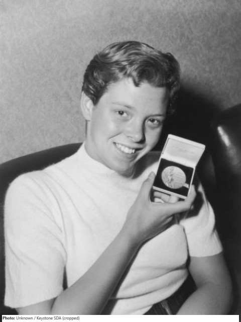 Judy Grinham’s first success came in 1953 when she won the Middlesex girls 100 yards backstroke as a member of Hampstead Ladies SC. She never reached the final of an ASA junior event, but had already won two international races for Britain when she won her first national title in 1955. A successful round of internationals galas and the retention of her ASA title in the summer of 1956 secured her place in the team for Melbourne Olympics. At the Games, Judy won the 100 metres backstroke in 1:12.9 seconds, which was the first world long-course record for the event, and she was the first British woman swimmer to win an Olympic gold medal for 32 years. As a relief from the pressures of world class backstroke swimming, Judy Grinham turned to the freestyle event in 1957, winning the ASA 200 yards title, but the following year she reverted to her former style and enjoyed an outstanding season. At the Commonwealth Games she won the 100 yards backstroke with a new world record of 1:11.9 seconds and this was also ratified as a record for the marginally shorter 100 metres distance. She then won a second gold medal and shared in a second world record in the medley relay, before completing her medial haul with a bronze in the freestyle relay. Later in the season, she won the 100 metres backstroke at the European Championships to become the first woman ever to hold the Olympic, European and Commonwealth titles. At the European Championships she also won a silver medal in the freestyle relay and bronze medals in the individual 100 metres freestyle and the medley relay. Judy, who in addition to her international championship honors won seven ASA titles, retired from competitive swimming on her 20th birthday and married the journalist Peter Rowley soon afterwards.