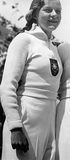 German swimmer Inge Schmitz won the silver medal with the 4x100m freestyle team at the 1936 Berlin Olympics along with Ruth Halbsguth, Leni Lohmar and Gisela Jacob-Arendt. In the individual 100m she was eliminated in the heats. Aged only 14 years, she was the youngest German Olympic participant in Berlin. Schmitz won the German national 100m freestyle title in 1938, and in the 400m in 1939-40. She later worked in the film industry as an actress.