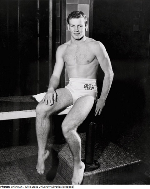 Bruce Harlan joined the Navy in 1944 and, while serving at the Naval Training Center in Jacksonville in 1947, won the first of his eight AAU titles. He later enrolled at Ohio State and won five NCAA championships. Harlan became one of the nation’s leading diving coaches and took up an appointment at the University of Michigan in 1954. He was killed after a diving exhibition in Connecticut when he fell from a diving tower while dismantling the scaffolding.