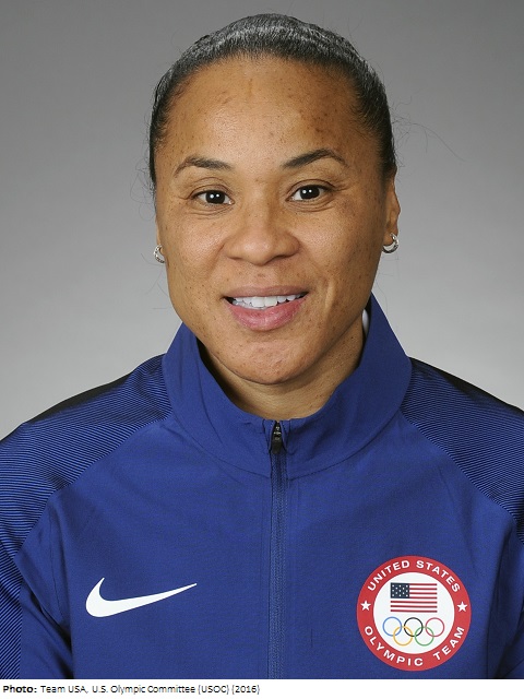 Dawn Staley was a point guard who played college ball at the University of Virginia, where she was the Naismith College Player of the Year in both 1991 and 1992, and won the Honda-Broderick Award in 1991 as the top female collegiate athlete in all sports. She won three gold medals with the US at the 1996, 2000, and 2004 Olympic Games. She also won a gold medal at the 1991 Universiade.