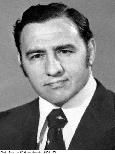 Alan Rice wrestling for the University of Minnesota, winning two Big 10 titles in 1948 and 1949. He also made All-American in his senior year of college, when he captained the Gophers’ wrestling team. Wrestling primarily Greco-Roman after college, Rice placed fifth at the 1954 World Championships and won a silver medal as a featherweight at the 1955 Pan American Games. In 1956 he won AAU titles in both freestyle and Greco. After the 1956 Olympics Rice became a wrestling coach, founding the Minnesota Amateur Wrestling Club (later the Gopher Wrestling Club). He coached the US Greco-Roman wrestlers at the 1972 Olympics. He is a member of the National Wrestling Hall of Fame, University of Minnesota ‘M’ Club Hall of Fame, the Minnesota Wrestling Hall of Fame, and the Helms Hall of Fame