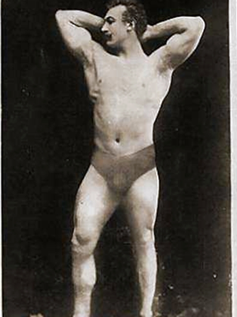 In 1899 he literally went from strength to strength and set four new British records at the amateur championships. Around 1905, he turned professional and put on a Music Hall act with a partner named Montague Spencer. The two strongmen performed amid scenery representing the Roman arena and, bedecked in the garb of gladiators, they engaged in a mock contest during which they used the cestus, trident, net and other weapons of the arena. At the end of the show, Elliot gave exhibitions of strength, the favorite of which was to support across his shoulders a long metal pole from which, at each end, was suspended a bicycle and rider. With this load Elliot would start revolving, slowly at first, but finally at such a speed that the “riders” would be swung into a horizontal position.
