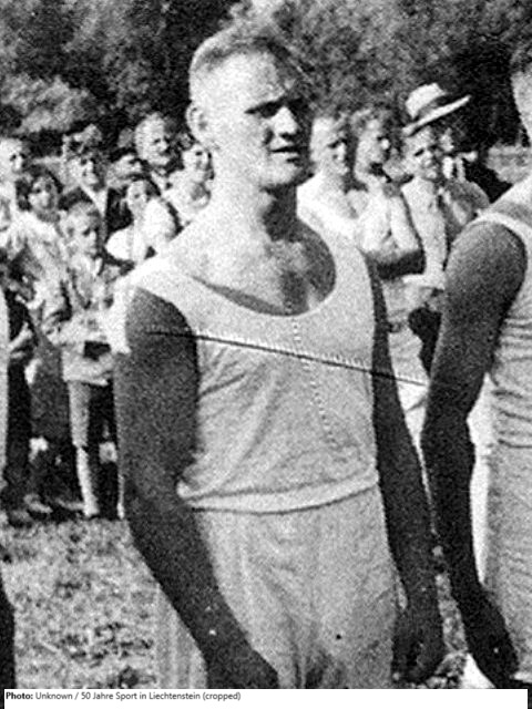 The tiny European micronation of Liechtenstein made its Olympic début at the 1936 Berlin Games, with Oskar Ospelt being one of the six athletes to represent the country. Ospelt competed in both the 100 metres and the discus throw in Berlin but did not advance from the heats in either event. He also had the honour of being the flagbearer for Liechtenstein at the Opening Ceremony. After the Olympics he competed in the discus and javelin at the 1938 European Athletics Championships, finishing 15th and 8th, respectively. Later the same year Ospelt set a national record in the discus when he threw 43.36 metres in Basel, Switzerland, with the record still standing by the end of 2018. After the war he once again competed at the European Athletics Championships, this time in Oslo in 1946, finishing 11th in the discus and 13th in the javelin. Ospelt participated at his third and final European championships in 1954 where he finished last in the qualification round for the discus.