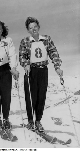 Brynhild “B” Grasmoen was known for her model-like good looks as much as her skiing. She grew up in Merced, California and later attended Merced College. Grasmoen won the California junior ski championships for five consecutive years, 1942-46. In 1946 she won the Alta Snow Cup in Sun Valley, repeating that victory in 1953. She was California Class A and Class B Champion in 1947, before making the 1948 Winter Olympic team. Grasmoen was twice married, and a scholarship in her name is given at Merced College, the Arnold, Ione & Brynhild Grasmoen Memorial Scholarship.