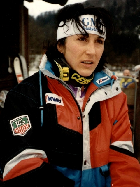 Through 2013 Carole Merle is the French female skiier with the most victories and podiums at the World Cup, winning 22 races (12 super-Gs and 10 giant slaloms) and standing atop the podium 44 times between 1987 and 1994. A four-time Olympian (1984, 1988, 1992, 1994), Merle won one Olympic medal, a silver in the 1992 super-G at Albertville. She came through for three medals at the World Championships, highlighted by a gold in giant slalom in 1993, with two silvers, giant slalom in 1989 at Vail, Colorado and super-G in 1991 at Saalbach, Austria. In the seasonal World Cup competition, Merle was a six-time champion, winning the super-G consecutively from 1989-92 and the giant slalom in 1992 and 1993. She was runner-up in the overall World Cup in the 1991-92 season. That was likely her best season, winning her Olympic medal and seven races on the World Cup circuit, three in super-G and four in giant slalom, although in 1990 she also won five World Cup races. After her career ended, Merle went into business, but suffered some financial difficulties which became public.
