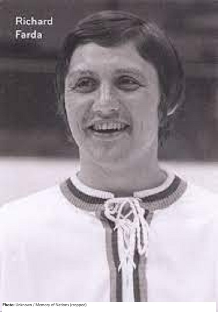 Richard Farda was one of the first Czechoslovaks to skate professionally in North America. A right winger, he was drafted as a free agent by the Toronto Toros of the World Hockey Association (WHA) in 1974, and played for them from 1974-76, and then moved with them to Alabama, playing with the Birmingham Bulls in the 1976-77 season.