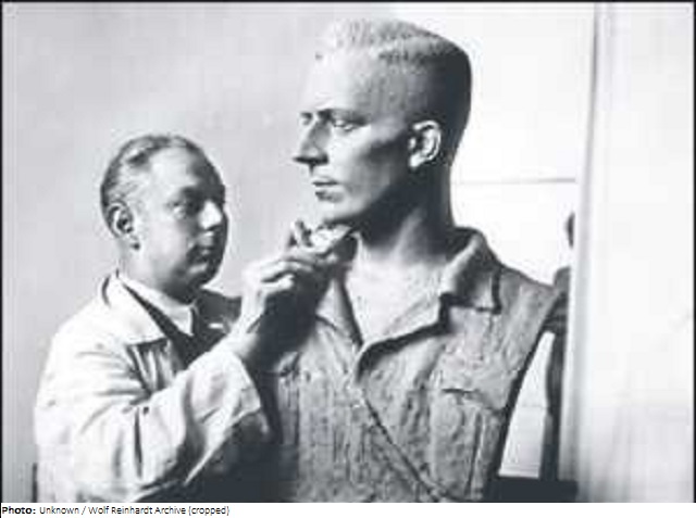 Paul Gruson was educated at the Berlin Museum of Decorative Arts and the Berlin Academy. He created the Wild Boar for the square of the same name in Berlin, which is always an important mark during the Berlin Marathon. The original sculpture was lost in World War II, now survived only by a replica. During the Third Reich Gruson was initially seen as a typical Nazi, but he had concealed his non-Aryan grandmother, consequently, he had to retire from the public very soon and was excluded from the Reich’s Association of fine artists. In 1930, he designed a monument to Horst Wessel, the alleged Nazi martyr, which was not realized for this reason. After the war Gruson lived in East Berlin and was assigned to make a bust of Wilhelm Pieck, first President of the German Democratic Republic. Since 1952 he was professor for sculpture for two years at the College of Fine Arts in Dresden. Shortly before the Wall was built, he went to West Berlin and created a bronze effigy of Walter Schreiber, Mayor of Berlin, for the Berlin House of Representatives.