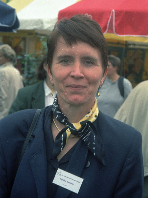 Whitewater canoeist Angelika Bahmann was the mother of Christian Bahmann who participated in the 2004 Athens Olympics. Angelika herself won the gold medal in the K-1 at the 1972 München Olympics, where canoe slalom events were held on the canoe slalom course of Augsburg for the first time (and for the last time until 1992). In 1971 and 1977 she won the K-1 World Championship (in 1971 also with the East German team). In 1975 and 1977 she also won team silvers, and in 1975 a bronze medal in the K-1. From 1970-72 and in 1976 she was East German champion.